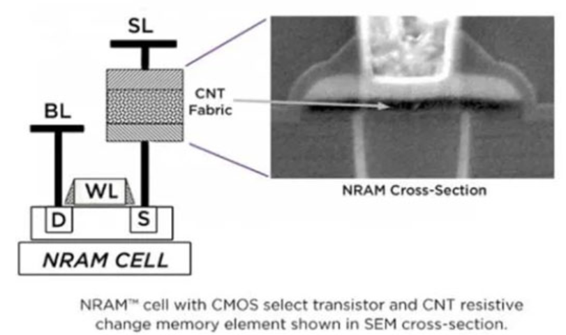 對(duì)比別的存儲(chǔ)器,納米碳管運(yùn)行內(nèi)存(NRAM)是一個(gè)近些年出現(xiàn)的新東西,它具備眾多優(yōu)點(diǎn):可以DRAM的速度提供非易失性,具有超越DRAM的可擴(kuò)展性和對(duì)閃存的超強(qiáng)耐久性的潛力。它比基本上全部新起存儲(chǔ)系統(tǒng)(PCM,