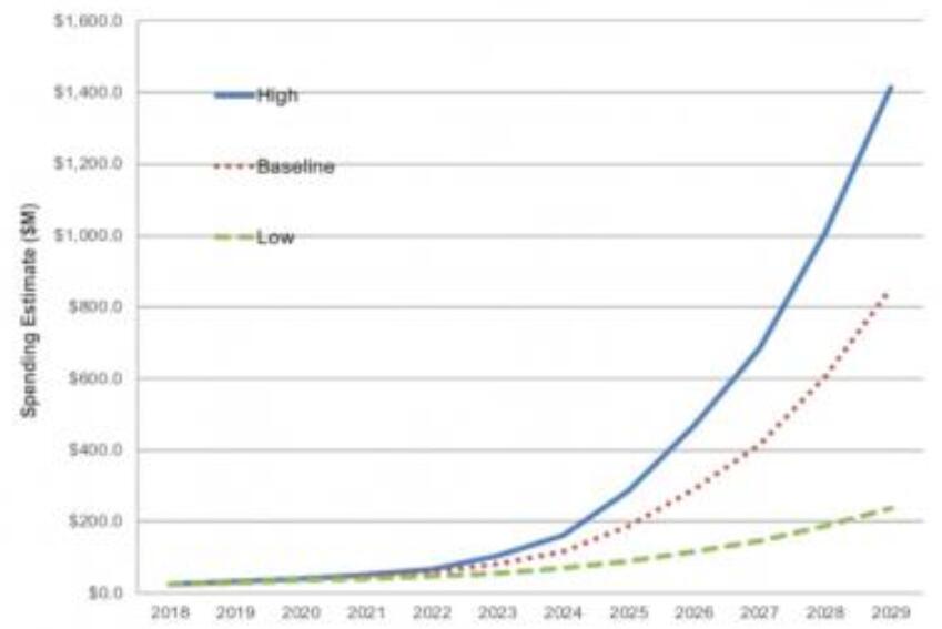 對MRAM存儲器的巨大需求將刺激設備支出的穩(wěn)步增長。預計MRAM設備市場將從2018年的2600萬美元增長到2029年的854美元-增長33倍。