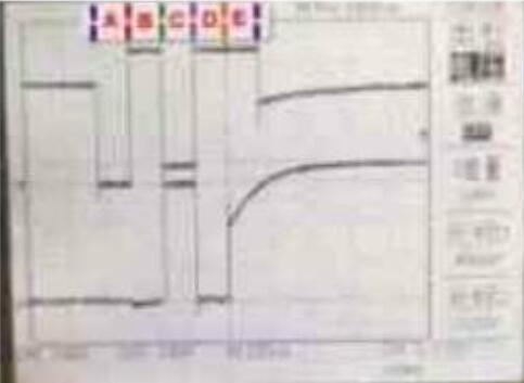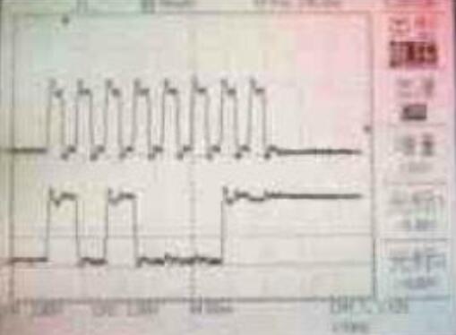 將示波器的通道1連接到寫使能信號,通道2連接到數據端D7。如圖1 所示,上方的波形為通道1接收的數據,下而的波形為通道2接收的數據。設計輸入向量測試,當地址為OOO時,將片選端CS置為低電平,圖1 中,A區WT=*0”,RD=“1“,RD= “0”,讀出寫入數據 為“0”; B區WT=“1”,數據為“0”; C 區WT=“0”,RD=“1”,寫入數據為“1”D 區WT-“1”,RD-“1”,為了更好地觀察讀出“1”時端口的電平變化,該段不進行讀寫,在輸出端口上加弱的低電平信號; E區WT=“1”,RD=“0”,讀出數據為“1”,可明顯地看到讀出數據“1”的過程。從圖中可以看到數據“0”和“1”被成功地寫入和讀出。