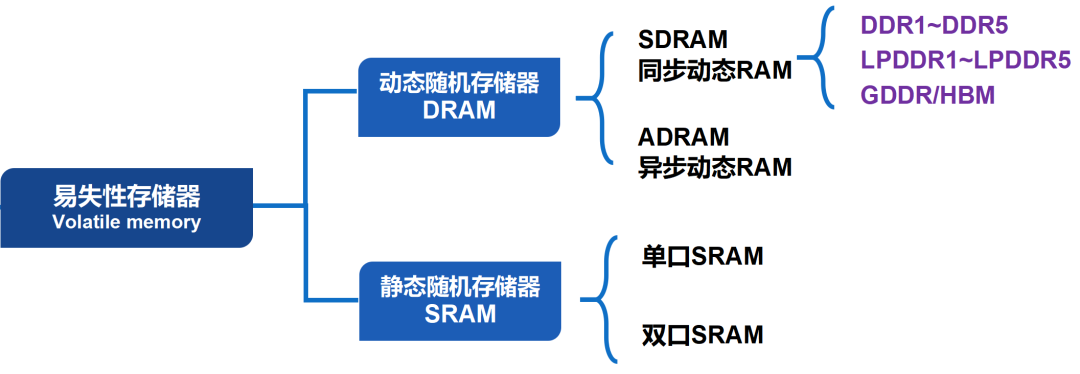 在過去幾十年內,易失性存儲器沒有特別大的變化,主要分為DRAM(動態隨機存取存儲器)和SRAM(靜態隨機存取存儲器)。它在任何時候都可以讀寫,RAM通常是作為操作系統或其他正在運行程序的臨時存儲介質(可稱作系統內存)。
