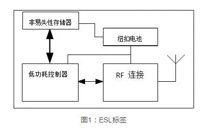 結(jié)構(gòu)最簡單的ESL由一個(gè)LCD或電子、RF模塊、墨水顯示屏、配套處理器、紐扣電池和低引腳數(shù)存儲(chǔ)器(易失性和非易失性存儲(chǔ)器)構(gòu)成。可以根據(jù)需求功能的不同,將所需要的價(jià)格走向,購買走向和當(dāng)前庫存信息存儲(chǔ)在ESL中,待一天結(jié)束刷新中央服務(wù)器的數(shù)據(jù)。如果要實(shí)現(xiàn)用一顆小紐扣電池供電并維持?jǐn)?shù)幾年的工作機(jī)能需要讓整個(gè)系統(tǒng)使用一個(gè)低功耗控制器和存儲(chǔ)器。基于內(nèi)置的連接選項(xiàng)(通常是BLE或Wi-Fi),板載存儲(chǔ)器可兼作協(xié)議棧存儲(chǔ)空間,繞過商場的中央服務(wù)器,直接連接用戶手機(jī)。