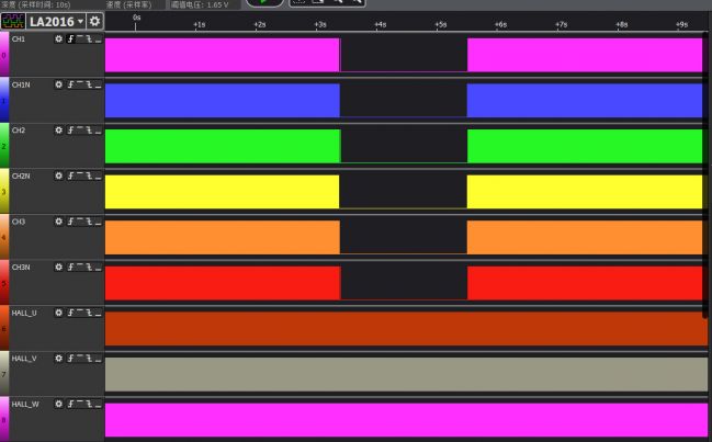 每次PWM換相后都會持續輸出一段有效電平,等到電流恢復后PWM波形恢復正常。